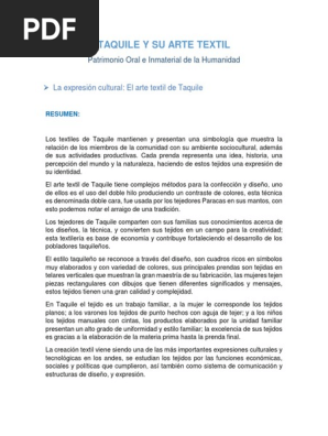 Application Name: Taquile Y Su Arte Textil Resumen Imperio Inca Textiles